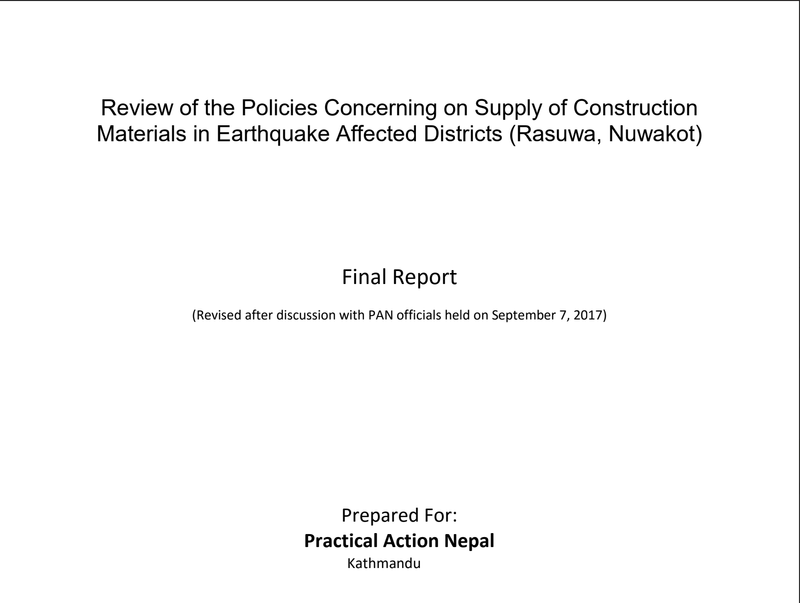 Review of the Policies Concerning on Supply of Construction Materials in Earthquake Affected Districts (Rasuwa, Nuwakot)